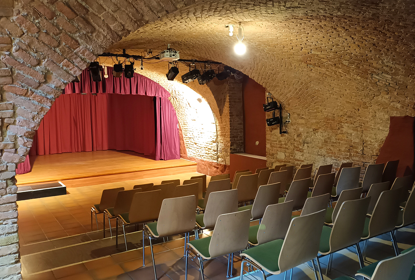 Die alten Mauern sorgen für eine einzigartige Stimmung und die überschaubare Raumgröße lässt die Zuschauer in intimer Atmosphäre hautnah am Geschehen teilhaben. Regelmäßig finden hier auch Veranstaltungen des Kinderprogramms der Stadtbibliothek Rastatt statt.