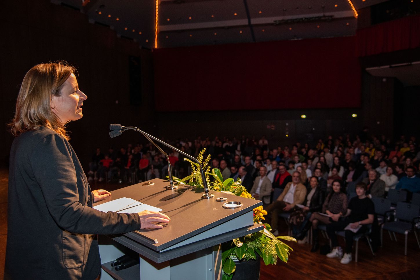 Im Rampenlicht standen dabei die Athletinnen und Athleten, die im Jahr 2025 mit beeindruckenden Leistungen auf regionaler, nationaler und internationaler Ebene geglänzt hatten. Nominiert waren insgesamt rund 200 Personen der Jahrgänge 1939 bis 2017. „Der Sportplatz ist die beste Social Media Plattform“, betonte Oberbürgermeisterin Monika Müller bei ihrer Begrüßung und unterstrich die gesamtgesellschaftliche Bedeutung des Sports über alle Altersgruppen hinweg sowie den hohen Stellenwert der Vereinsarbeit. „Unsere Sportlerinnen und Sportler zeigen, was mit Leidenschaft, Disziplin und Teamgeist möglich ist. Sie sind Vorbilder für uns alle.“ Als Sponsoringpartner konnten in diesem Jahr neben der Firma Hofmann Entsorgung erstmals auch die Stadtwerke Rastatt gewonnen werden. Mit den neuen Juniorensportpreisen der Stadtwerke Rastatt werden Spitzenleistungen im Kinder- und Jugendsport gewürdigt. Außerdem stellte Müller die Bürgerstiftung Rastatt als Sponsor des diesjährigen Sonderpreises vor.