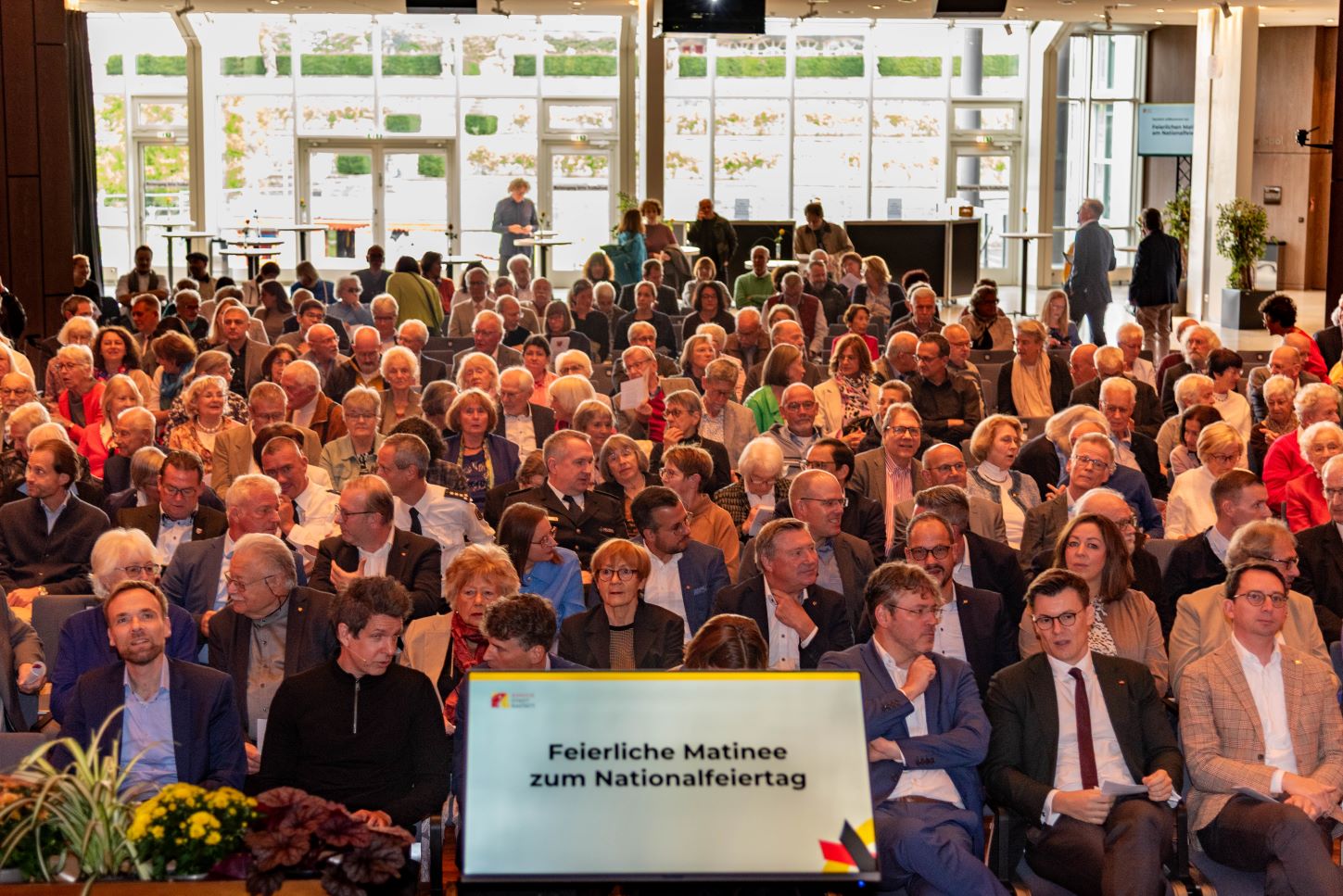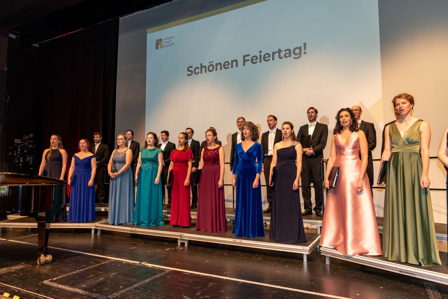 Am Ende der Matinee setzten die Gäste und das Vocalensemble Rastatt mit dem gemeinsamen Singen der Nationalhymne ein Zeichen für die Werte, die auch 35 Jahre nach der Deutschen Einheit verbinden: Einigkeit und Recht und Freiheit.