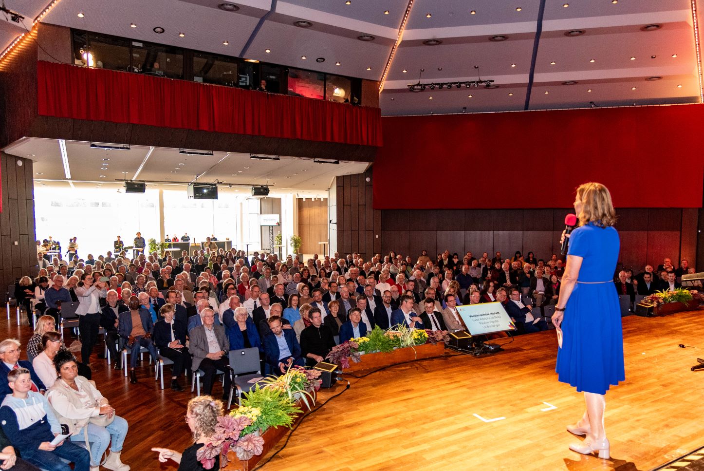 In ihrem Grußwort erinnerte Müller an die Bedeutung von Freiheit, Demokratie und Zusammenhalt – Werte, die auch 35 Jahre nach der Wiedervereinigung täglich neu verteidigt werden müssten. „Einheit und Miteinander entstehen nicht von selbst. Es braucht Menschen, die dafür einstehen – früher wie auch heute“, betonte Müller. Im Hinblick auf das Thema des Gastredners machte die Oberbürgermeisterin deutlich: „In einer Welt, in der digitale Medien unsere Wahrnehmung von Wahrheit beeinflussen, ist es wichtiger denn je, dass wir Meinungsvielfalt als Bereicherung verstehen.“
