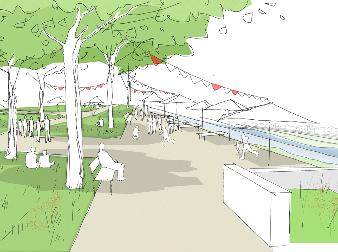 Auf diese Weise entsteht eine Auswahl an konkreten Maßnahmen, die umgesetzt werden sollen, um die Murg mit der Stadt zu verbinden – „erlebbar“ zu machen. Weiterhin bieten Sitzstufen in den Dammböschungen eine weitere Möglichkeit, die Murg für die Bürger zu öffnen. Die Schaffung von neuen Aufenthaltsräumen ist ein wichtiger Bestandteil dieses bedeutenden Projekts.