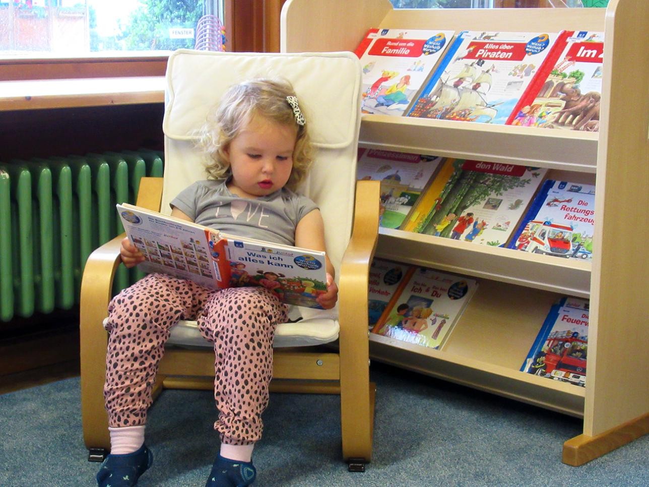 Die Sprachkompetenz der Kinder spielt eine wichtige Rolle im Schriftspracherwerb. Bilder, Schrift, Zeichen und Symbole sind bewusste Teile der sprachanregenden Umgebung in unserer Kita.