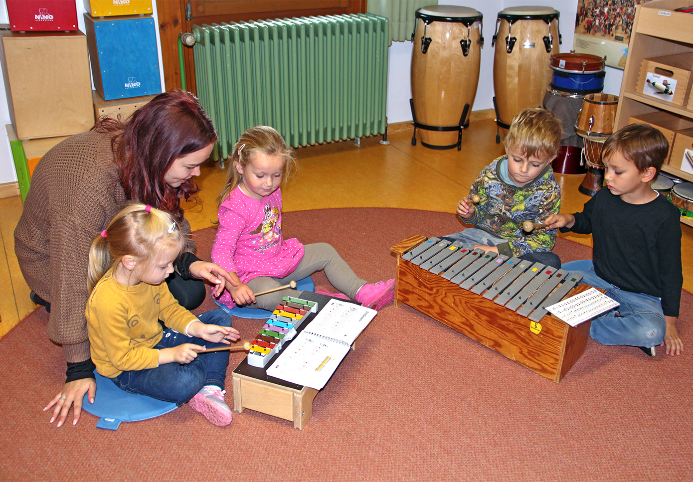 Das eigenständige Musizieren der Kinder, führt zur Weiterentwicklung ihrer Kreativität, Konzentration, Motivation und Ausdrucksfähigkeit. Die Stimme ist ein Instrument mit dem Klang, Rhythmus und Ausdruck der Musik erfahren und erlebt wird. Unser tägliches Singen, der Singkreis und das Singen mit rhythmischer Schulung im Chor macht die Musik erlebbar, verleiht ein positives Lebensgefühl und bildet die Stimme. Die Kinder lernen vielfältige Instrumente kennen, erwerben ein Grundwissen und entdecken deren Aufbau und Einsatz.