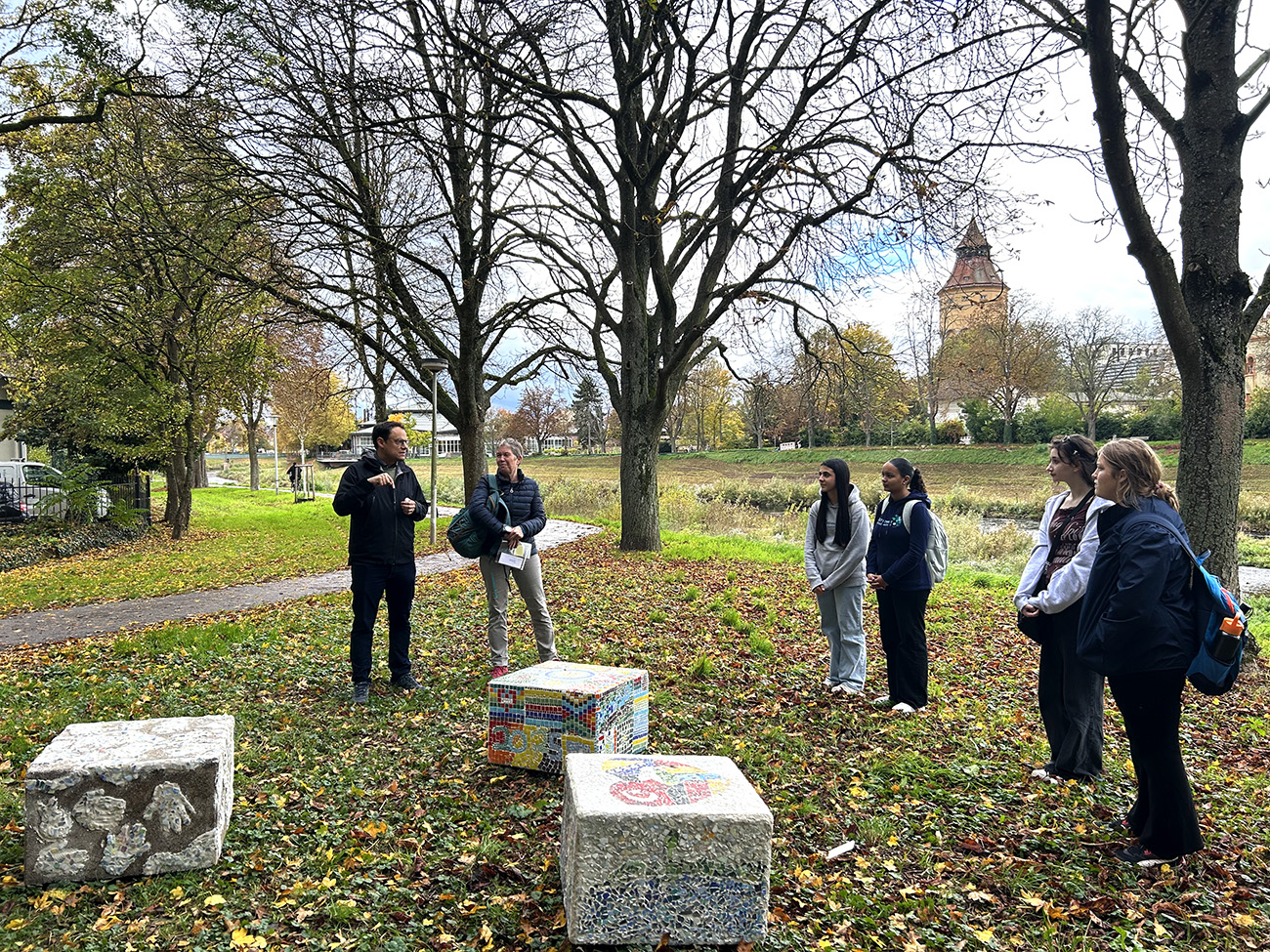 Nun stehen sie an Ort und Stelle: Die „Quatscher“ an der Murg bei der Franzbrücke. Sie laden zum Verweilen und Austausch ein. Einen der drei Betonsitzwürfel gestalteten Schülerinnen und Schüler der August-Renner-Realschule in Kooperation mit dem Stadtteilbüro Dörfel. Den anderen verzierten Schülerinnen der Karlschule. Den dritten Betonsitzwürfel kreierten Jugendliche beim Offenen Treff der Jugendförderung.