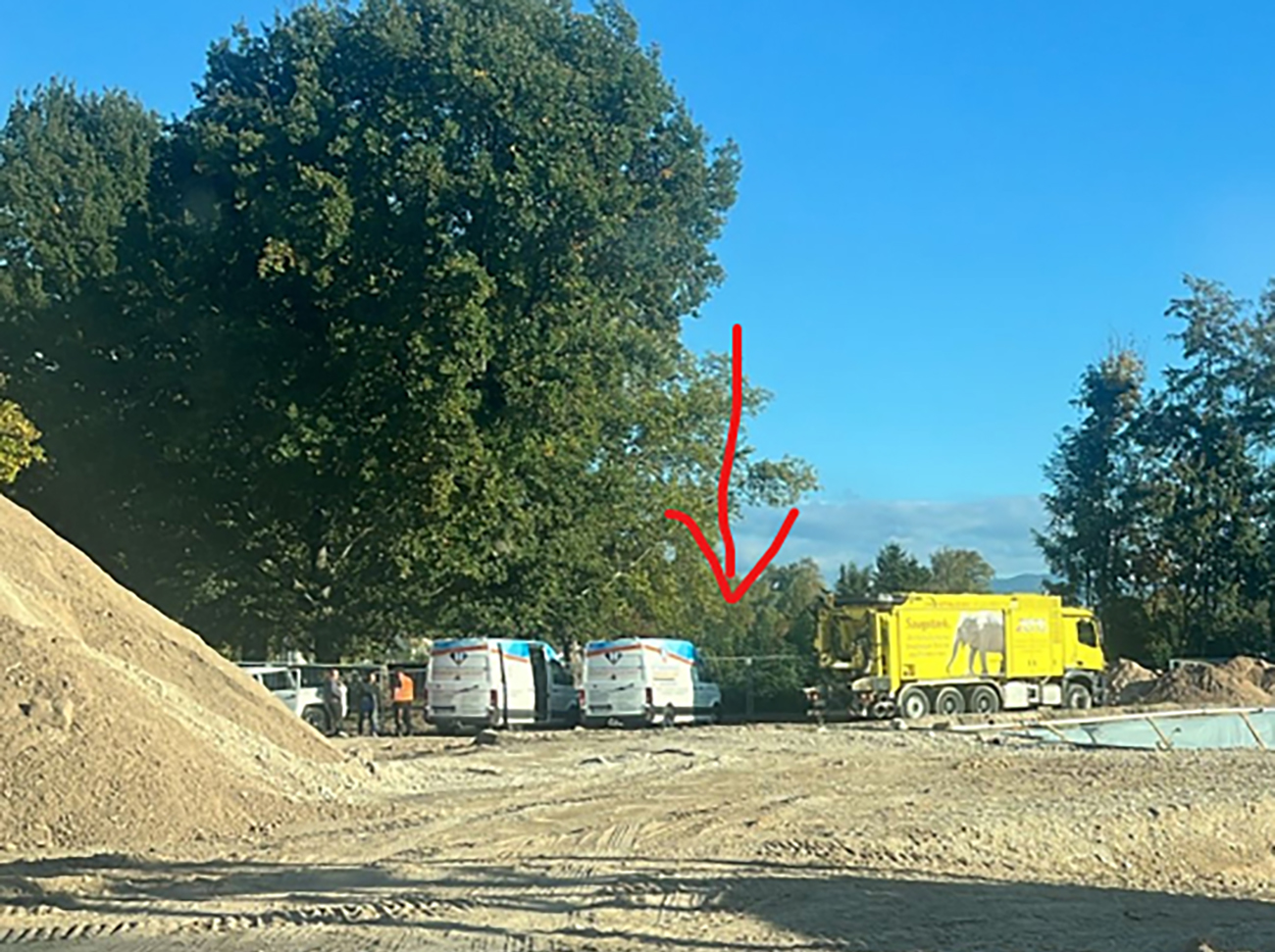 Die Baustelle ist seit dem 14. Oktober stillgelegt. Zudem wird die Baustelle des Kombibads rund um die Uhr bewacht. Die Stadt weist darauf hin, dass weder das Betreten der Baustelle noch beispielsweise Drohnenflüge über oder rund um das Kombibadgelände erlaubt sind.