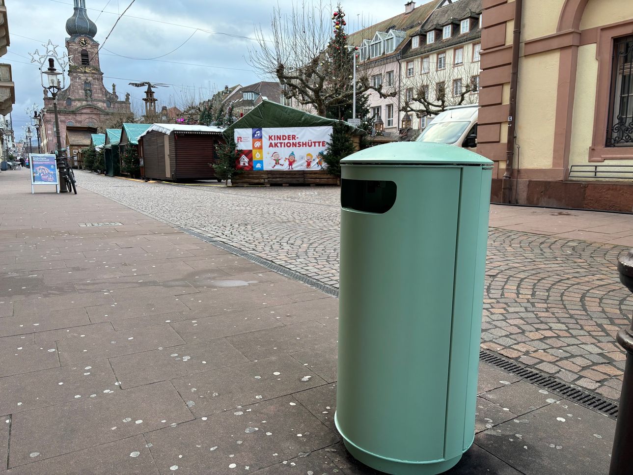 Zwei Abfallbehälter auf dem Marktplatz präsentieren sich seit Donnerstag, 5. Dezember, in neuem Gewand. Vor der Sparkasse und dem Edeka wurden zwei farblich unterschiedlich gestaltete Modelle aufgestellt: eines in leuchtendem Gelb und eine weitere Tonne in mintgrün. Ob und welche der beiden Farbvariante es wird, entscheidet sich nach einem Testlauf.