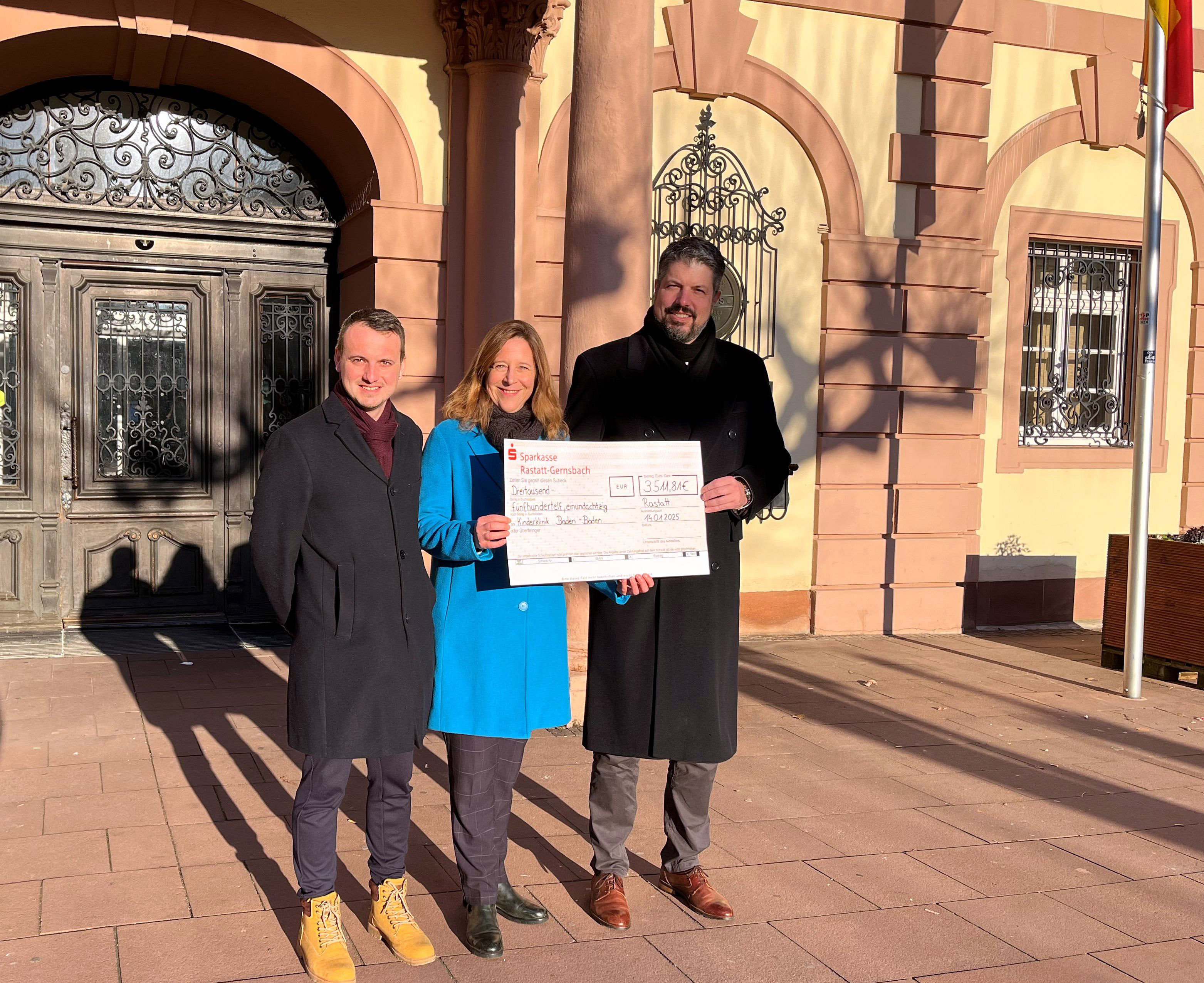 Die Benefizaktion auf dem Rastatter Weihnachtsmarkt war ein voller Erfolg: Dank des Engagements der Mitglieder des Gemeinderats, der Stadtverwaltung und vor allem auch der Familie Levy kamen bei der Charity-Aktion und der Versteigerung der Weihnachtsbäume insgesamt 3511,81 Euro für die Klinik für Kinder- und Jugendmedizin des Klinikums Mittelbaden zusammen.