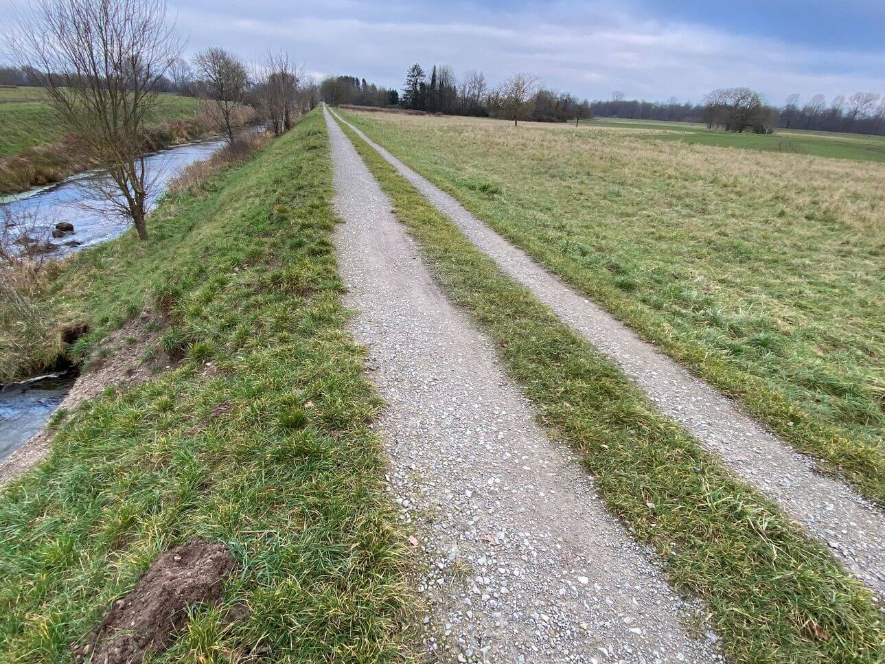 Der Feldweg entlang des Riedkanals, der die L77 mit der L78a verbindet, muss wegen einer abgerutschten Uferböschung in Höhe der Hofwaldschlut gesperrt werden. Gehölz hatte sich zuletzt an dieser Stelle verfangen und die Wasserströmung Richtung Böschung gelenkt.