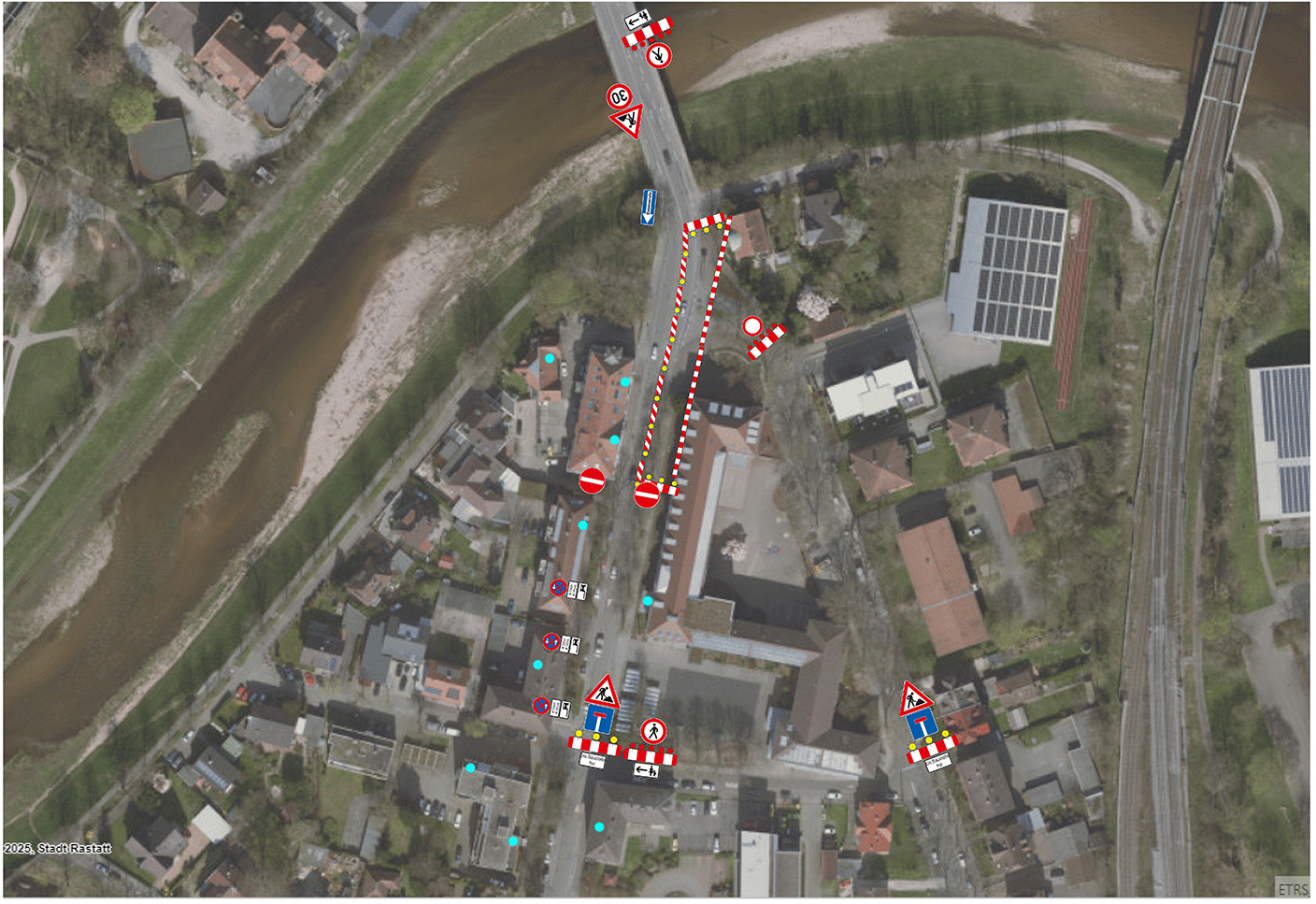 Der Verkehr der Karlstraße in Richtung Ludwigring / Bahnhofstraße wird großräumig über die Lützowerstraße, Kehler Straße und Kapellenstraße umgeleitet. Fußgänger sind von der Maßnahme nicht betroffen.