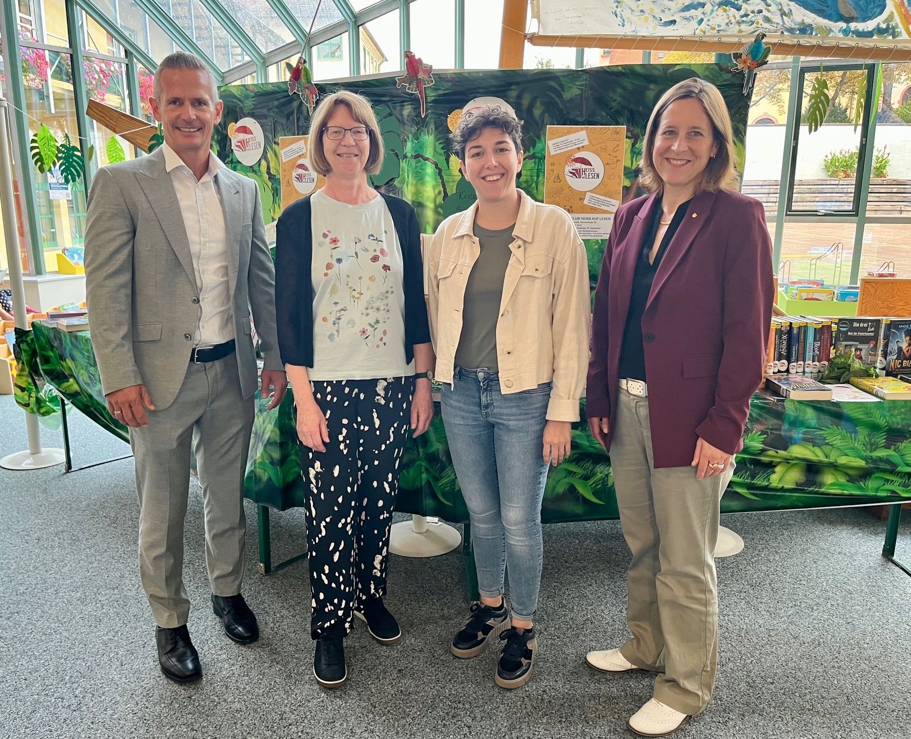 Oberbürgermeisterin Monika Müller und Bürgermeister Lutz Kirchner begrüßten die neue Kollegin. „Unsere Stadtbibliothek bleibt in allerbesten Händen. Frau Spiegelhalter bringt ebenso wie ihre Vorgängerin Frau Stellmach große Begeisterung für die Vermittlung von Wissen durch Lesen und Vorlesen mit. Frau Stellmach war prägend für unsere Bibliothek. Dafür danken wir ihr von Herzen. Ihr Wissen gibt sie nun weiter. Zugleich bringt Lea Spiegelhalter aber bereits eigene Erfahrungen mit, insbesondere im Bereich digitaler Medien oder bei der Gestaltung von Veranstaltungen“, so Müller.