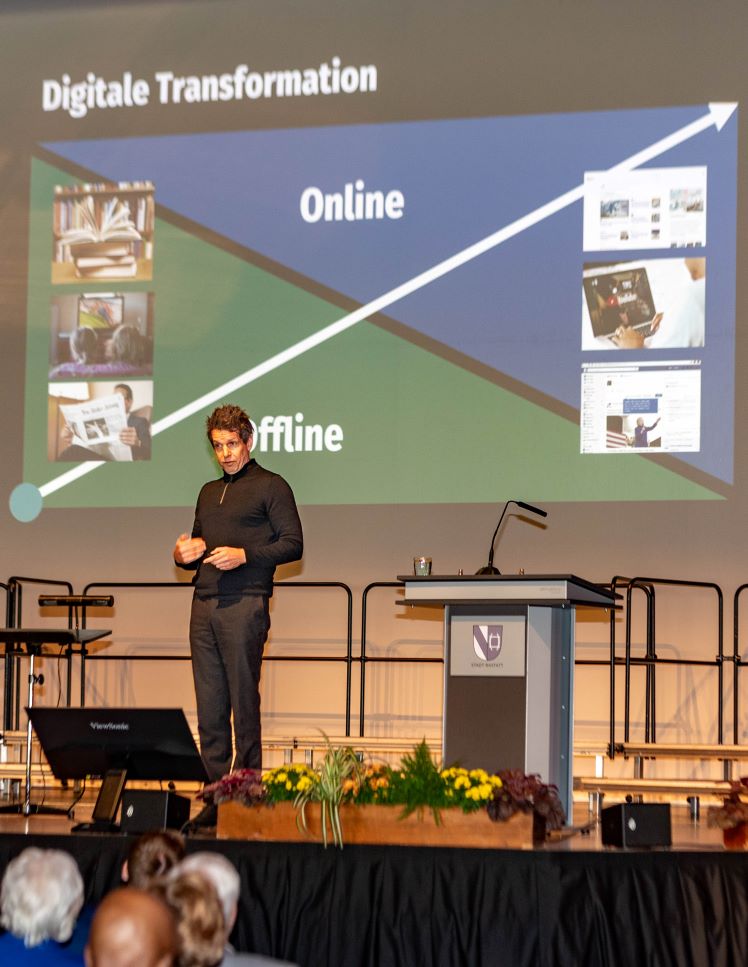 Mit einem eindringlichen Appell zur Begrenzung der Macht globaler Digitalkonzerne hat der Medienwissenschaftler Prof. Dr. Martin Andree die Gäste der feierlichen Matinee zum Tag der Deutschen Einheit in der BadnerHalle aufgerüttelt. Unter dem Titel „Wie die Tech-Konzerne die freien Medien zerstören“ zeichnete Andree ein düsteres Bild der digitalen Gegenwart – und zugleich konkrete Wege aus der Krise.