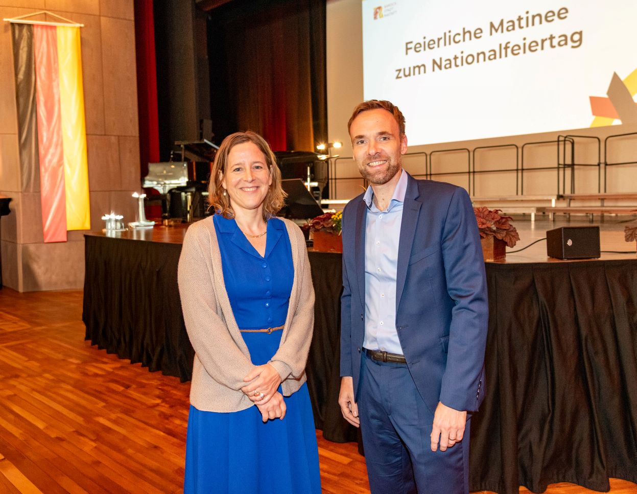 Am Ende der Matinee setzten die Gäste und das Vocalensemble Rastatt mit dem gemeinsamen Singen der Nationalhymne ein Zeichen für die Werte, die auch 35 Jahre nach der Deutschen Einheit verbinden: Einigkeit und Recht und Freiheit.