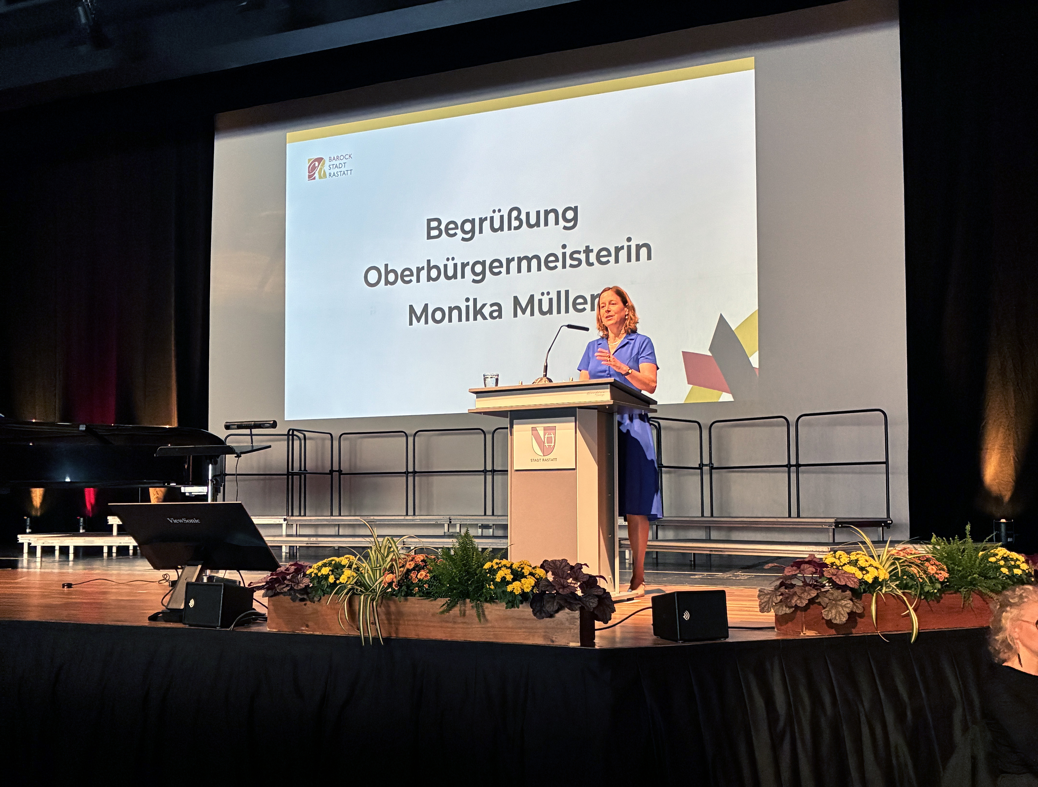Zur Matinee geladen hatten traditionell die Stadt Rastatt und Oberbürgermeisterin Monika Müller. Das Vocalensemble Rastatt, geleitet von Prof. Holger Speck und begleitet von Gryta Tatoryte am Klavier, setzte musikalische Akzente und würdigte mit Werken Rastatter Komponistinnen das kulturelle Erbe der Stadt.