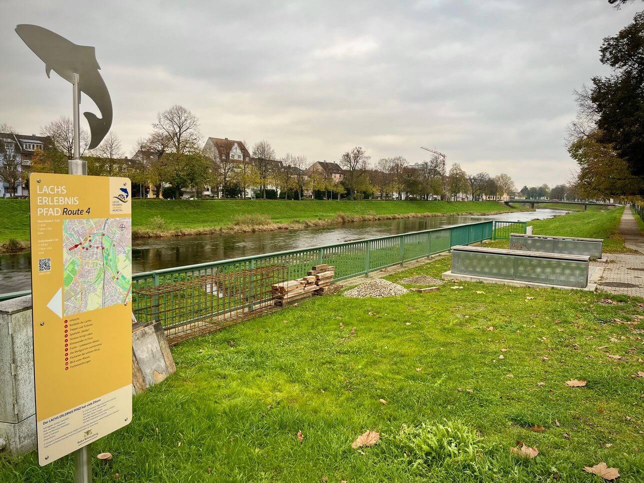 Am Montag, 18. November, wird der Edelstahl-Fisch montiert und im Anschluss noch mit Folie beklebt. Zudem wird das Weg noch neu gepflastert und barrierefrei gestaltet. Die Arbeiten nahe der Murg dauern rund eine Woche. Zusätzlich folgen in den kommenden Wochen noch zahlreiche Wegweiser für die Route durch Rastatt.