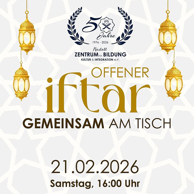Im Rahmen der Veranstaltung wird auf die Entwicklung des Vereins seit seiner Gründung zurückgeblickt. Gleichzeitig wird der Blick auf aktuelle und zukünftige Aufgaben des ZBKI Rastatt e. V. gerichtet. Bestandteil des Programms ist zudem ein gemeinsames Fastenbrechen (Iftar), das Raum für Begegnung und Austausch bietet.
